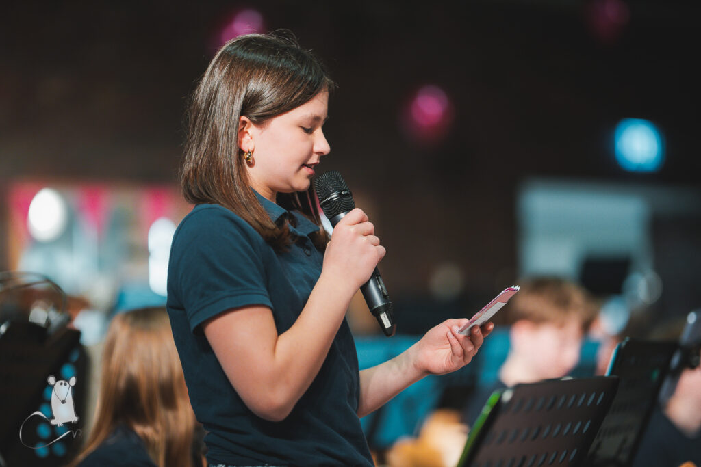 Der Abend werde eindrucksvoll beweisen, dass „Musik nicht nur Menschen verbindet, sondern scheinbar auch die Puppenwelt mit geschmeidigen Katzen und berühmte Komponisten,“ sagte Windhaus zur Eröffnung. Mit viel Engagement und Freude hätten die Musikerinnen und Musiker in den vergangenen Wochen geprobt, um ein abwechslungsreiches Programm zu präsentieren. Sollte mal ein falscher Ton erklingen, stellte Windhaus schmunzelnd fest, gehöre das dazu. Schließlich „ist das Live-Musik und künstlerische Freiheit!“